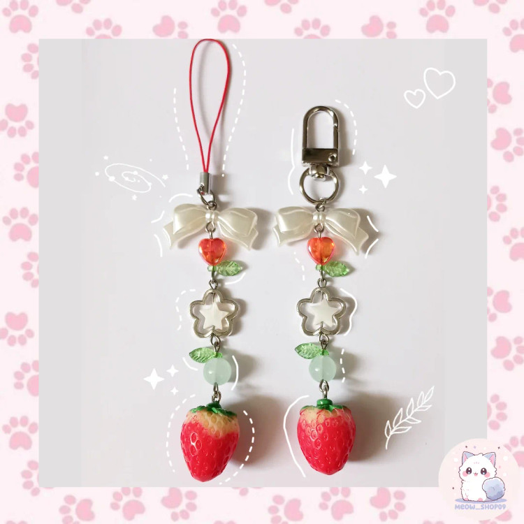 آویز توت فرنگی قابل سفارش تو دو مدل همراه با بند بصورت فونچارم و همراه با قفل به صورت بگ چارم ساخته شده با متریال وارداتی.